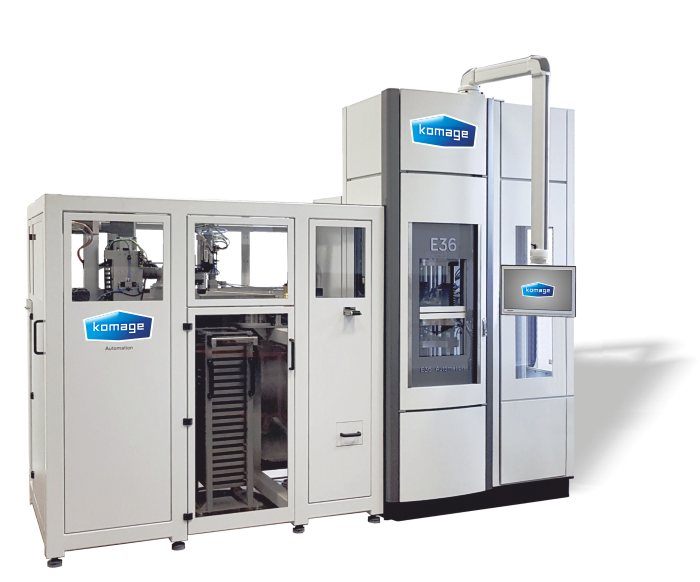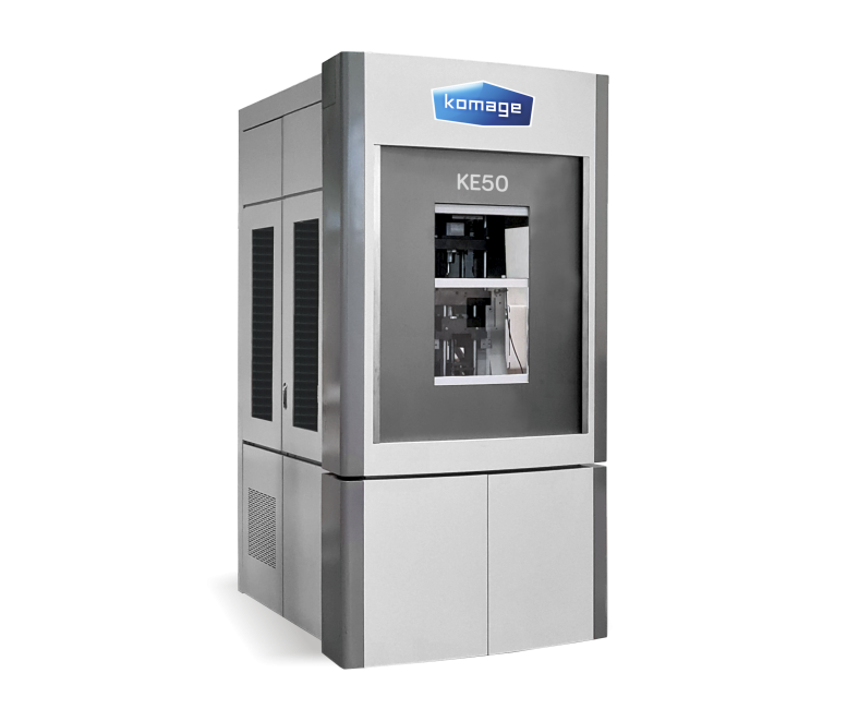 The machines of the KE Series are mechanical high-performance presses with a servo-electrically driven, freely programmable die axis. Komage has designed the presses of the KE Series specifically for manufacturing large quantities of molded parts from powder-based materials.